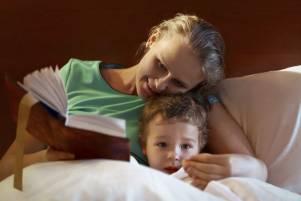 Мама рассказывает маленькому сыну сказку о Курочке Рябе: